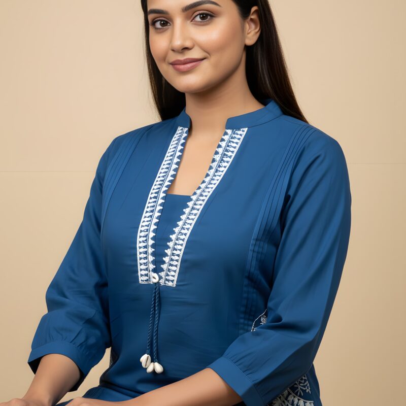 Blue Embroidered co-ord set for women