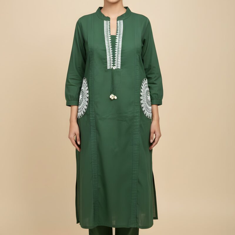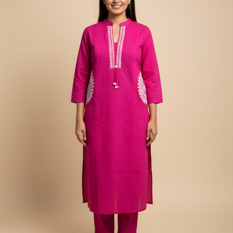 Black Cotton Embroidery Kurta Set