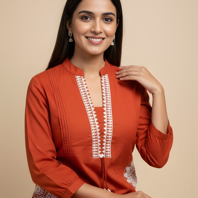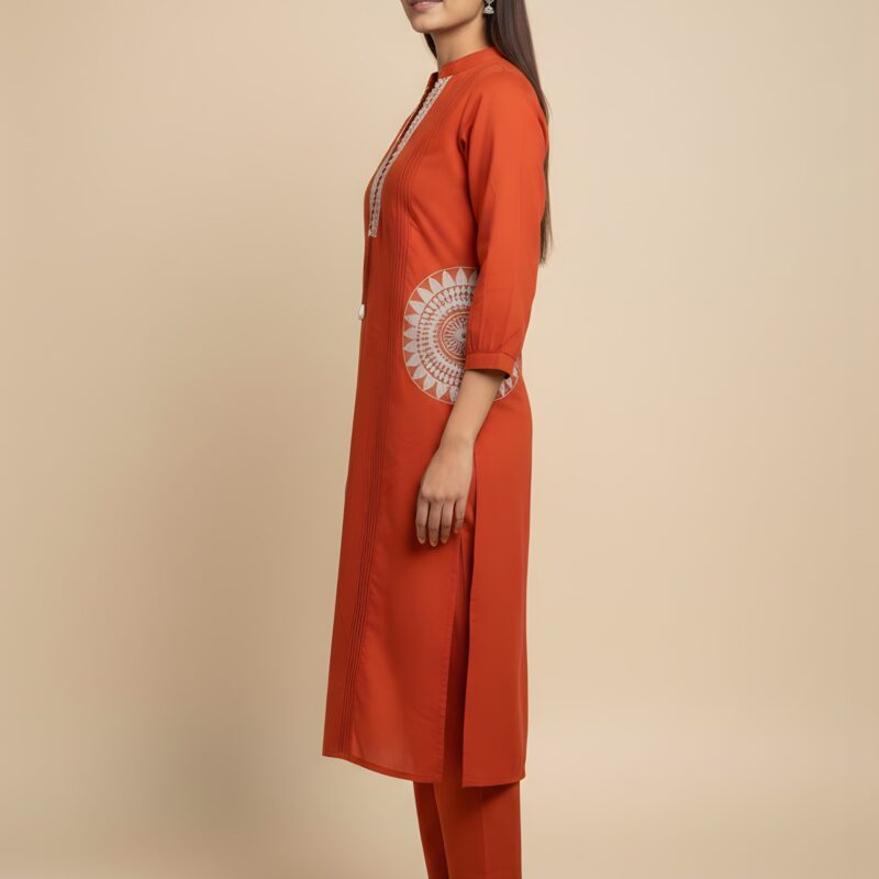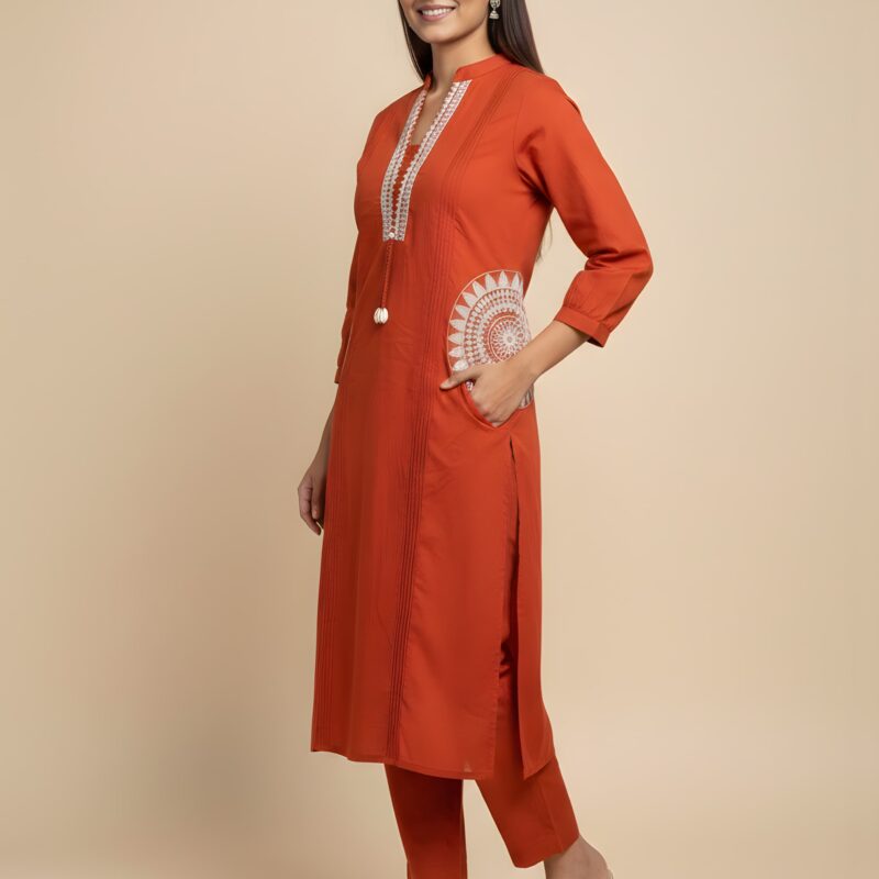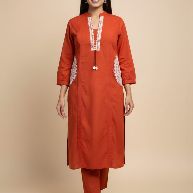 Orange Color Embroidered Cord Set Online