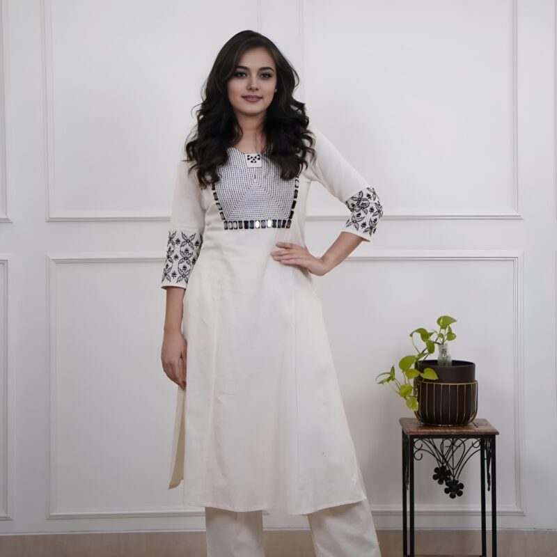 White Cotton Embroidery Kurta Set