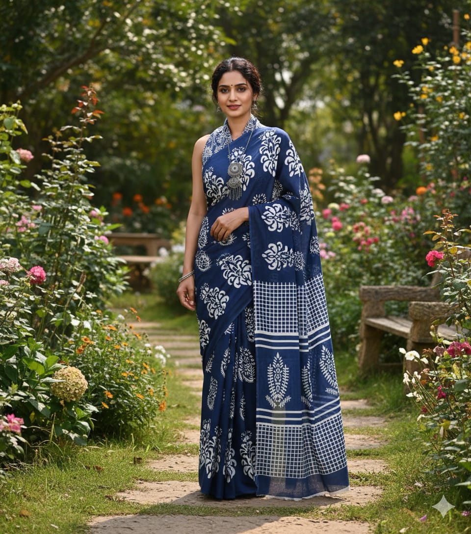 Be the first to review “Blue Handblock Printed Mulmul Cotton Saree”