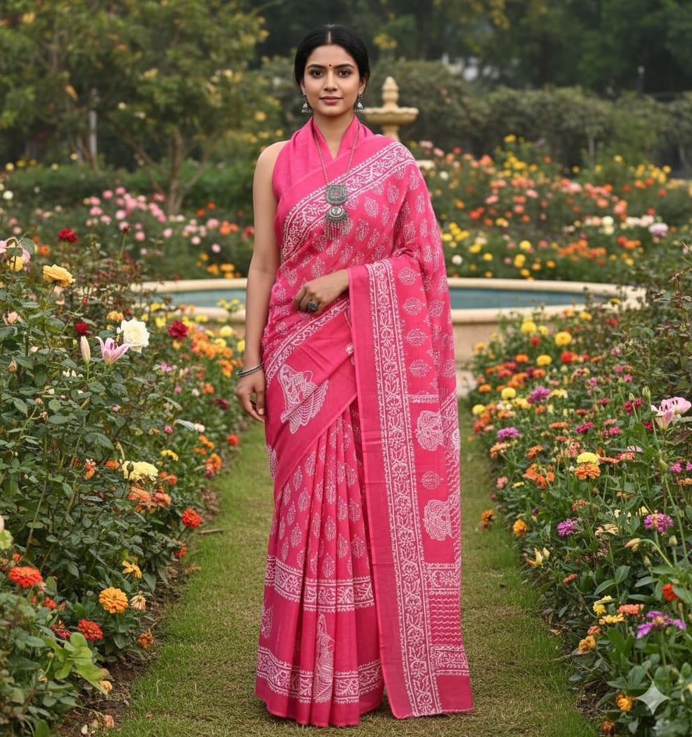 Be the first to review “Pink mulmul block printed cotton sarees” Cancel reply